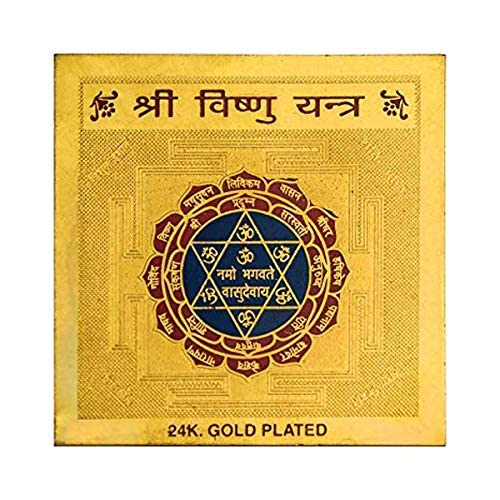 Shri Vishnu Yantra / Vishnu Yantra – 3.25×3.25 Inch Gold Polished Spiritual and Vastu Decor